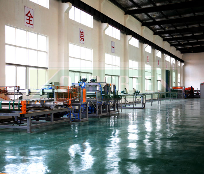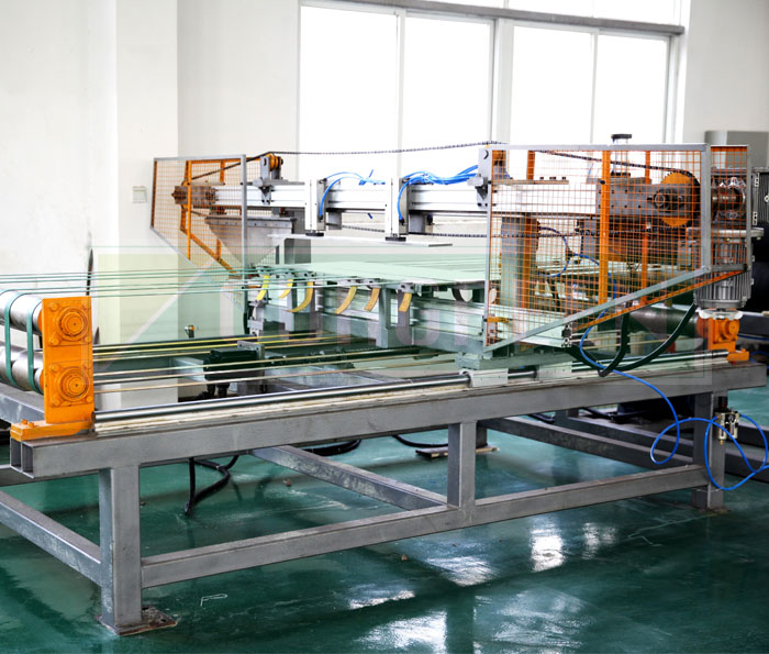 歐格XPS擠塑板生產線上的橫切機使用特種鋼制刀具將板材裁切成型,其裁切長度可調,以滿足板材型號需要。