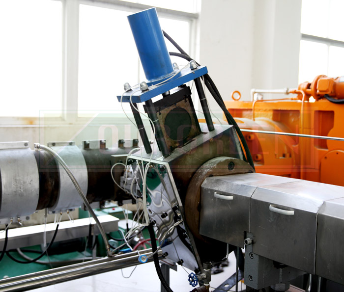 歐格XPS擠塑板生產線上的一號主機為雙螺桿擠出機,它的作用是使得投入的原料能夠塑化和混合。特有的雙螺桿設計使得原料可以充分混合,有效的確保了終產品的結構和密度。