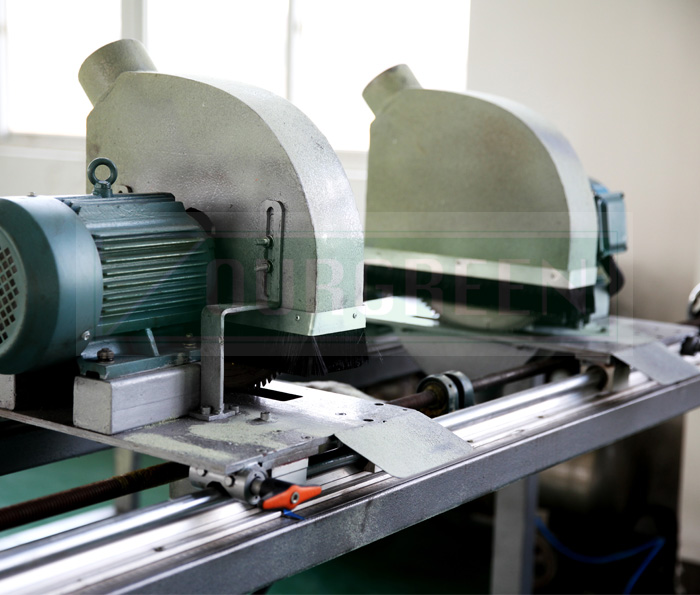 利用高速旋轉刀片將板材兩邊多余部分切除,切割形狀為直邊角。
